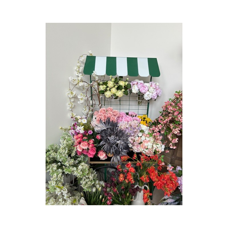 Questo carretto espositivo è perfetto per un fioraio, la rete con i porta vasi rendono facile la presentazioni di vasi o rami floreali mentre i manici e le ruote consentono lo spostamento in modo rapido e agevolato.