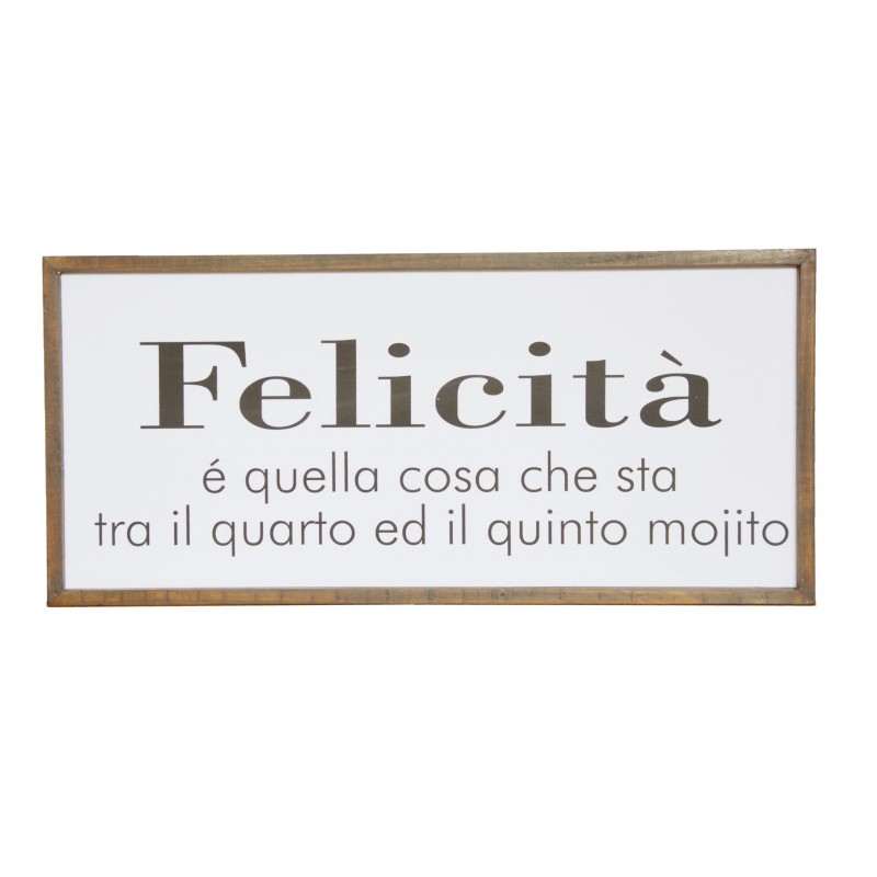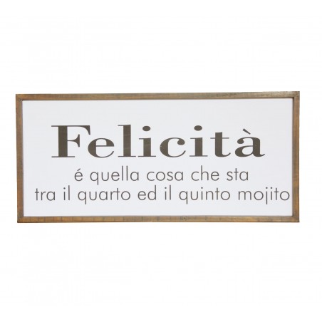 Quadro in legno con scritta "Felicità è quella cosa che sta tra il quarto e il quinto mojito" da appendere.