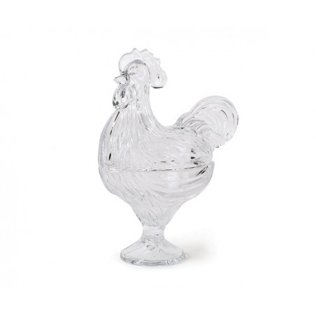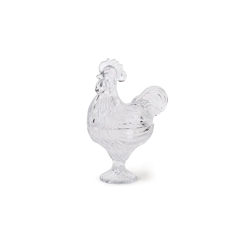 Contenitore a forma di gallina in vetro.