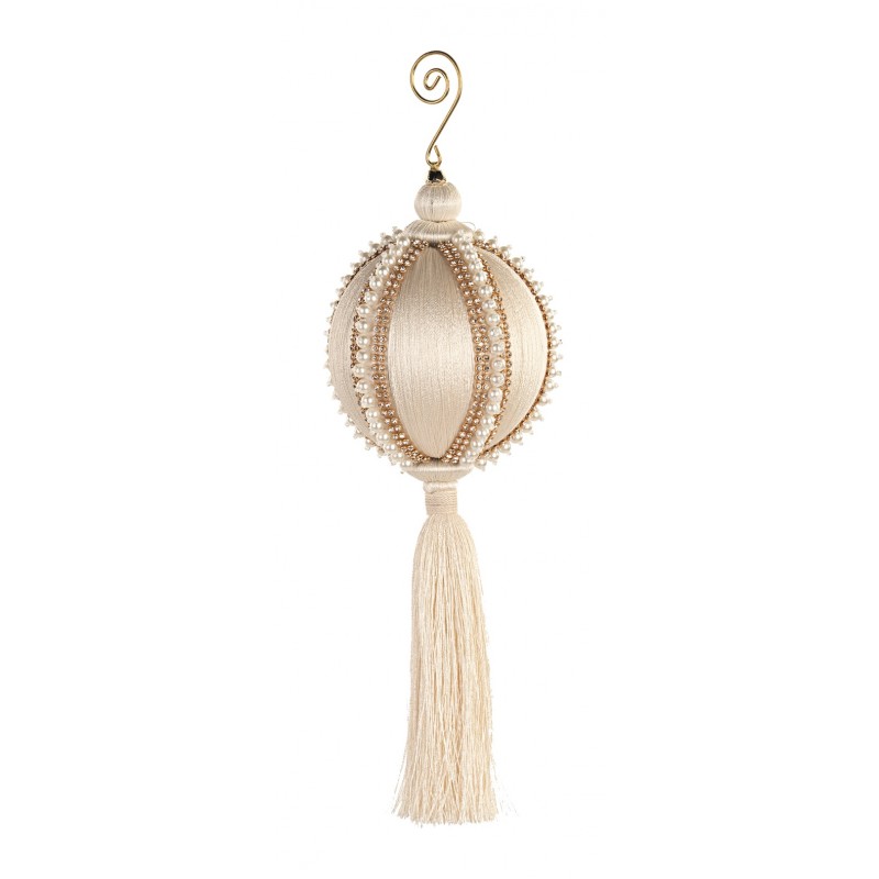 Pallina di Natale con perle e nappa color avorio