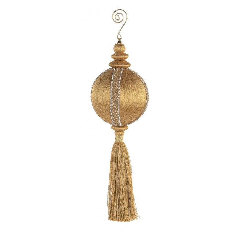 Pallina di Natale con perline e nappa color oro