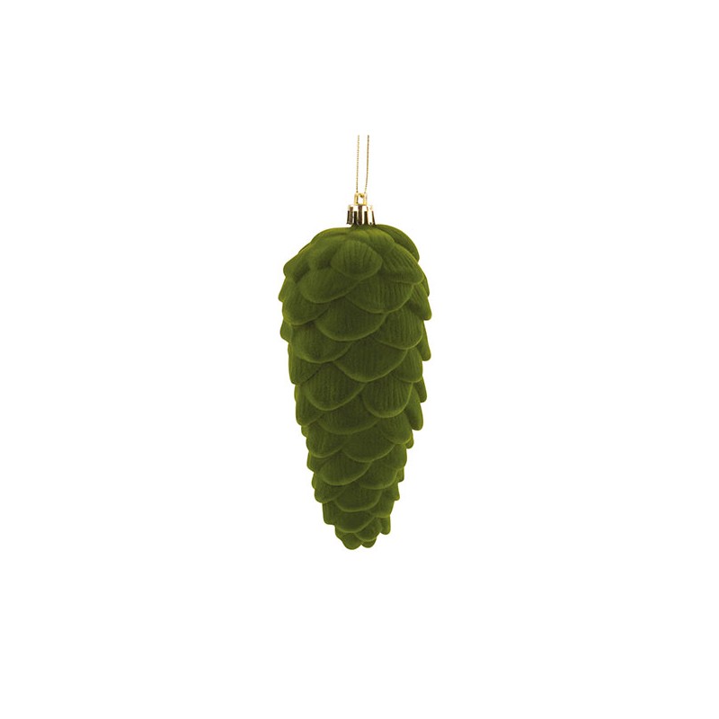 Pigna floccata da appendere disponibile nel colore verde e in due dimensioni.