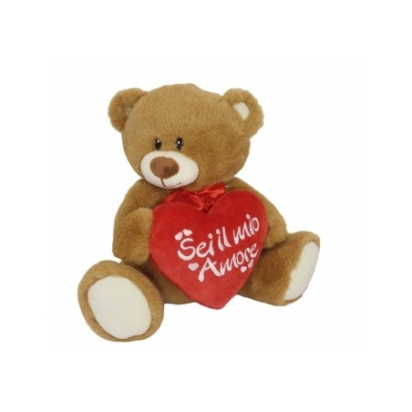 Orsetto di peluche con cuore rosso e scritta "sei il mio amore".