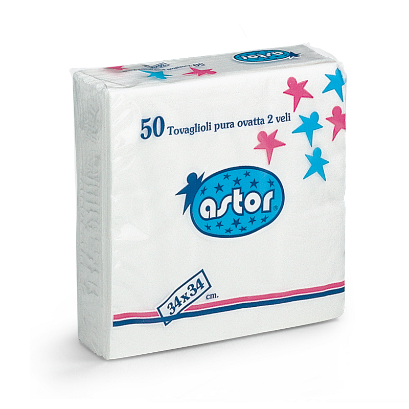 Tovaglioli in pura ovatta di cellulosa a due veli bianchi, morbidi, delicati, resistenti, indicati per l’uso domestico e professionale.