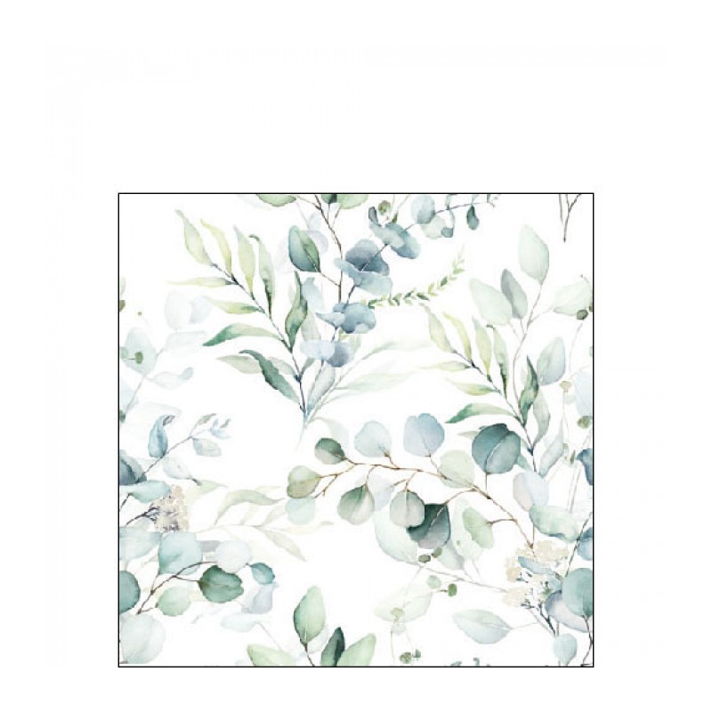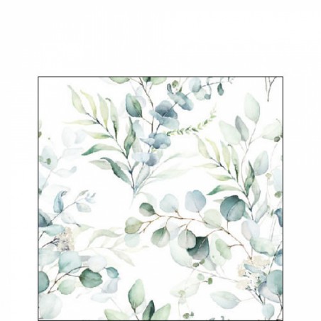 Tovaglioli in pura ovatta di cellulosa a tre veli con fantasia Eucalypto, morbidi, delicati, resistenti, indicati per l’uso domestico e professionale.