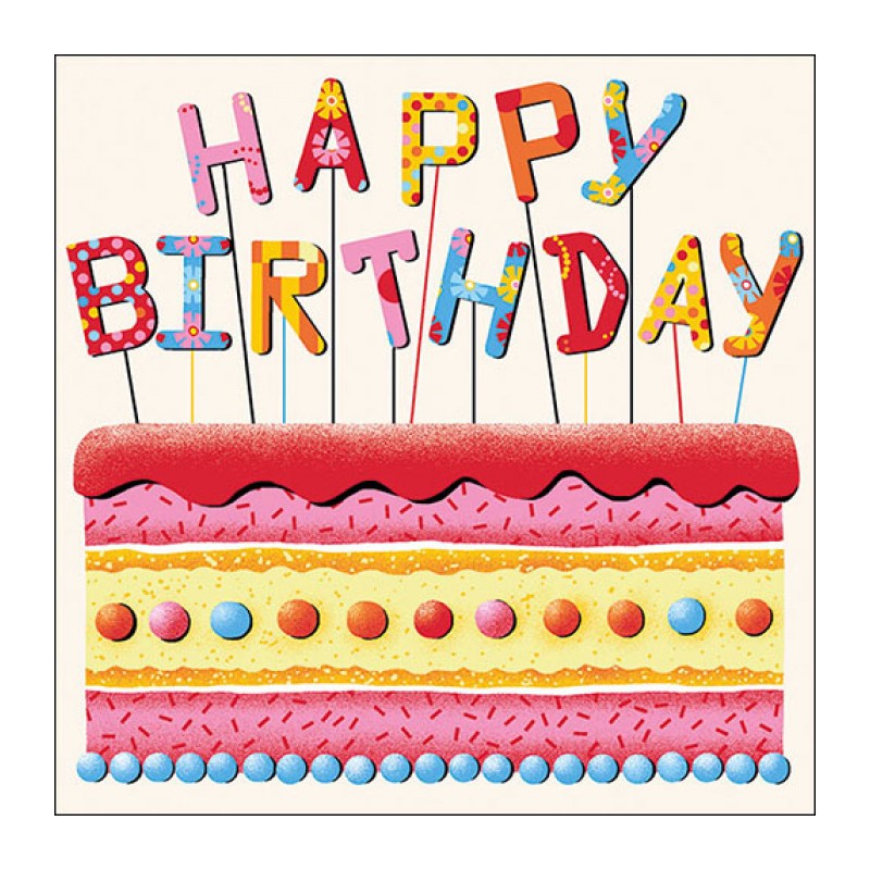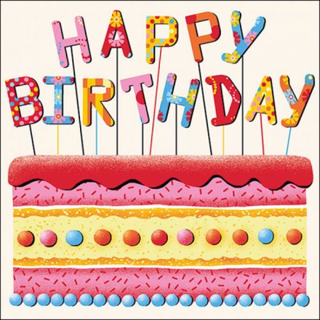 Tovaglioli in pura ovatta di cellulosa a tre veli con fantasia torta e scritta "Happy Birthday", morbidi, delicati, resistenti, indicati per l’uso domestico e professionale.