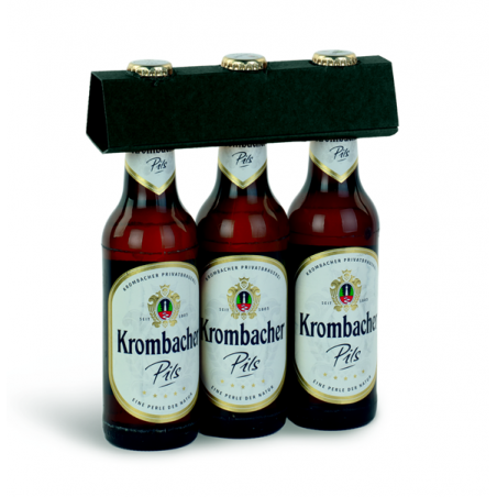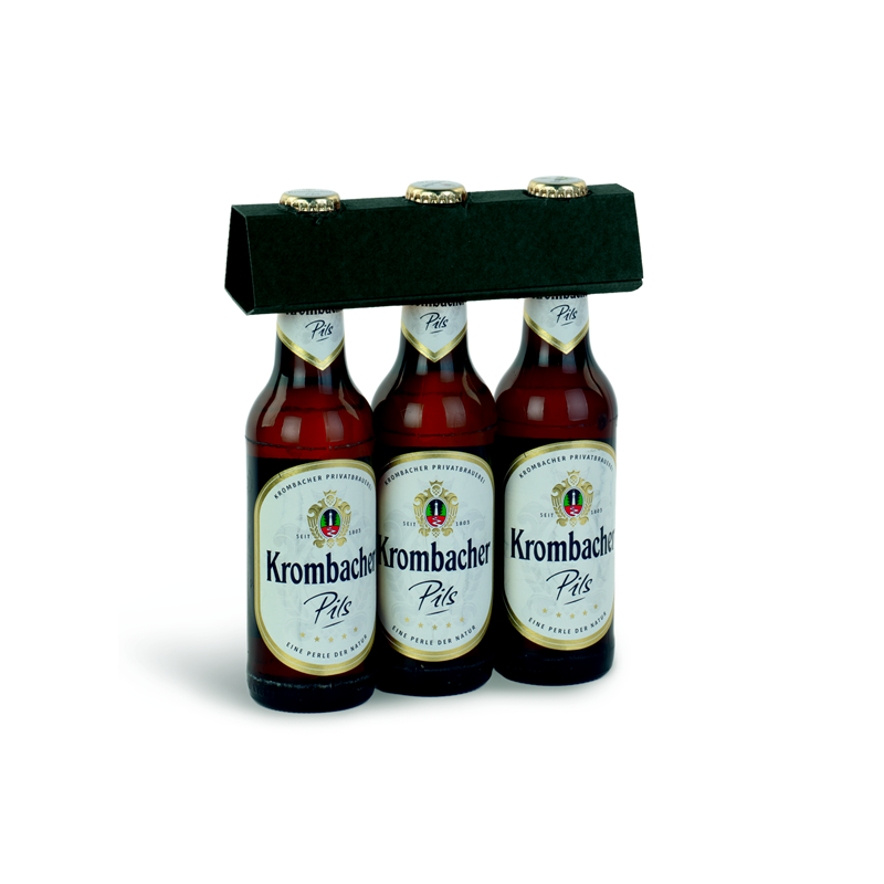 Portabottiglie in cartone accoppiato per contenere 3 bottiglie di birra.
