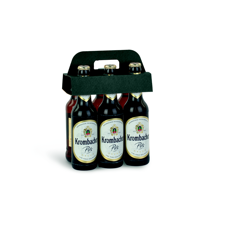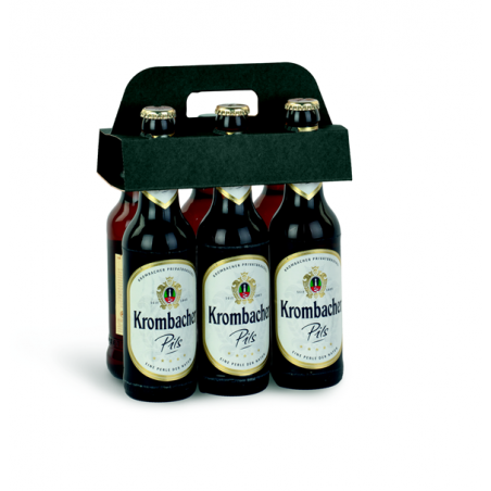 Portabottiglie in cartone accoppiato per contenere 6 bottiglie di birra.