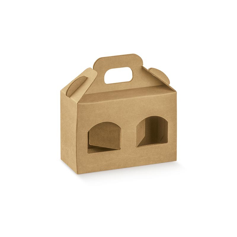 Scatola in cartone accoppiato con maniglia per contenere due vasetti in vetro modello Basic, Orcio, Standard e altri.