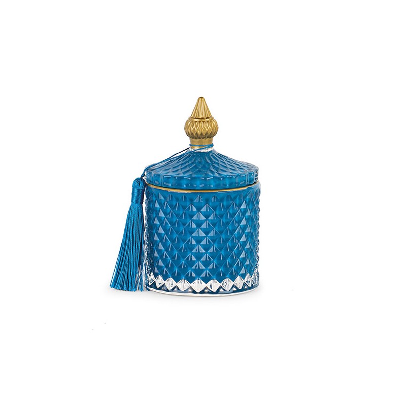 Potiche con finiture oro e candela profumata