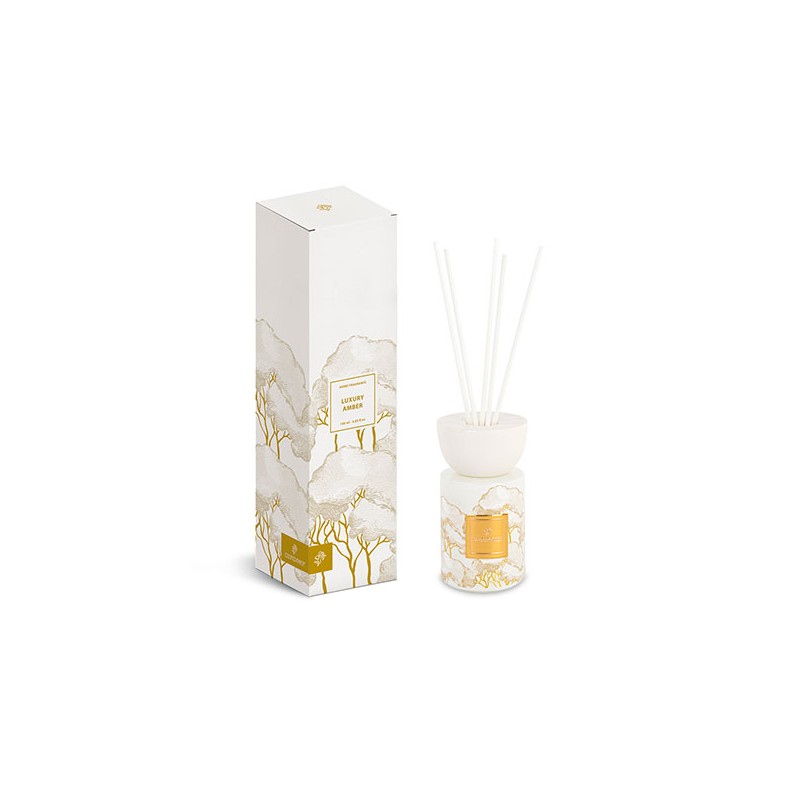 Profumatore per ambiente in tema naturale dorato con scatola regalo.