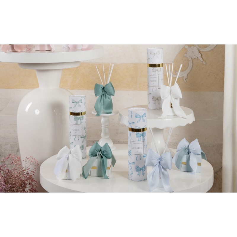 Profumatore per ambiente in tema fiocco con scatola regalo.