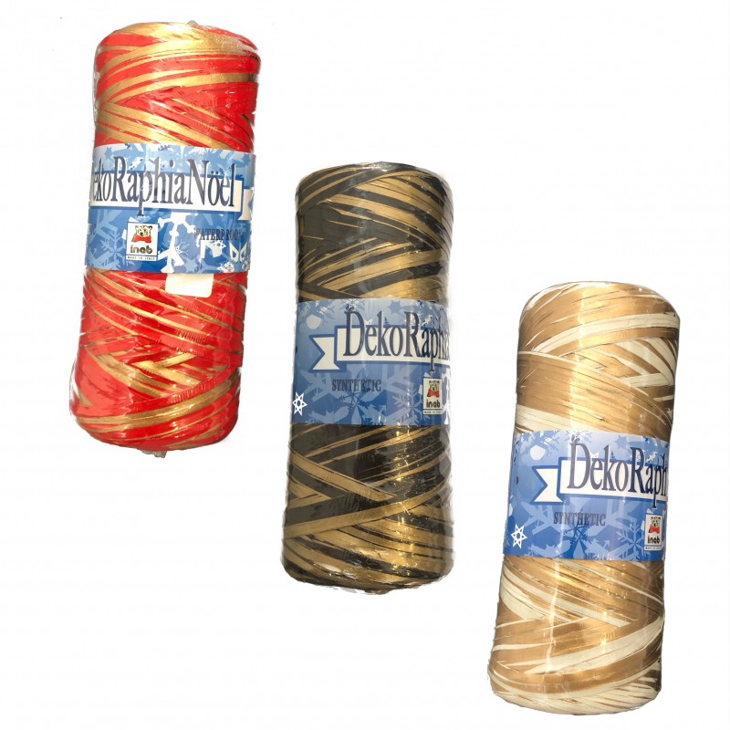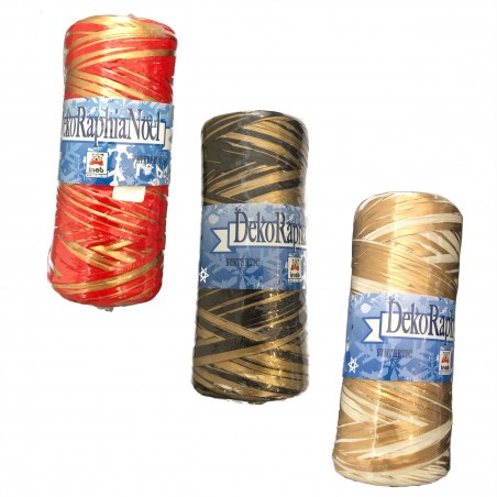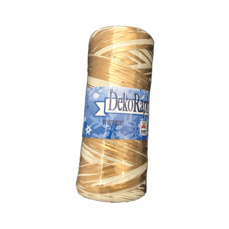 Bobina di rafia sintetica bicolore prodotta in Italia disponibile con base oro e secondo colore disponibile in diverse varianti.