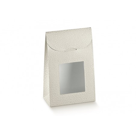 Sacchetto in cartoncino teso, con finestra in pvc trasparente, per contenere praline e prodotti dolciari
