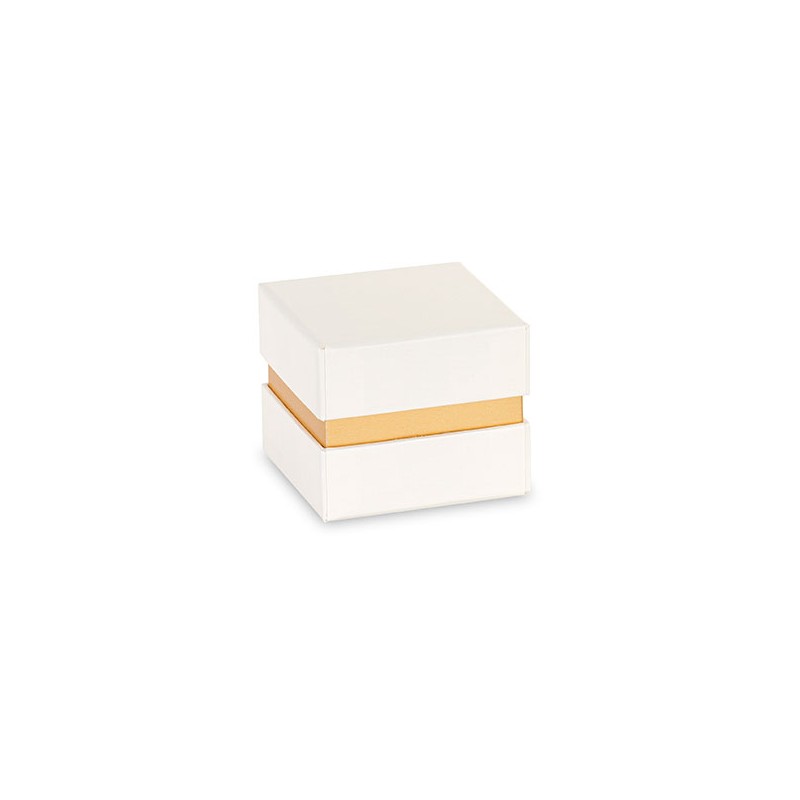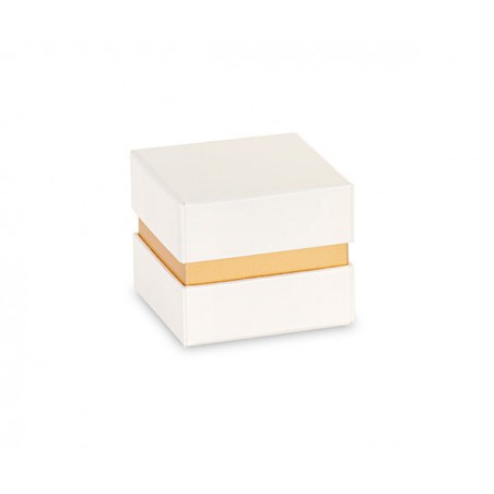 Scatola bomboniera quadrata con inserto e finitura dorata.