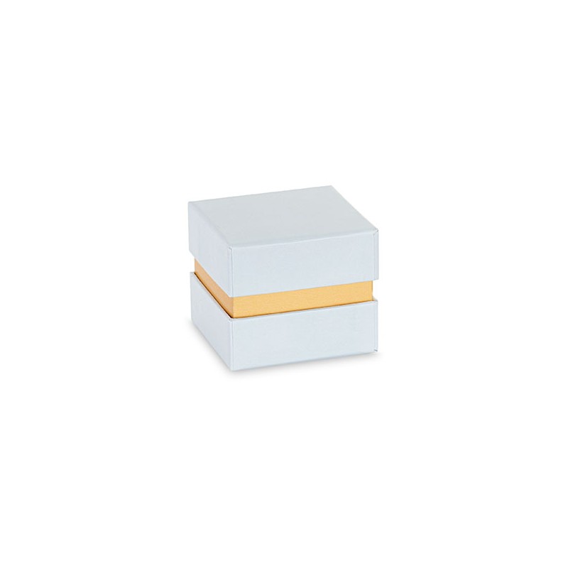 Scatola bomboniera quadrata con inserto e finitura dorata.