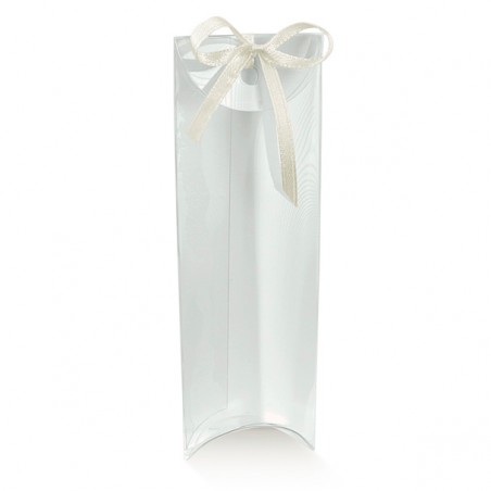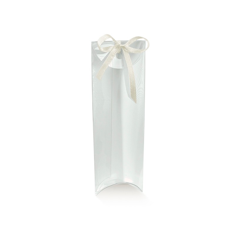 Bomboniera in pvc trasparente a forma di bustina con foro passanastro.
