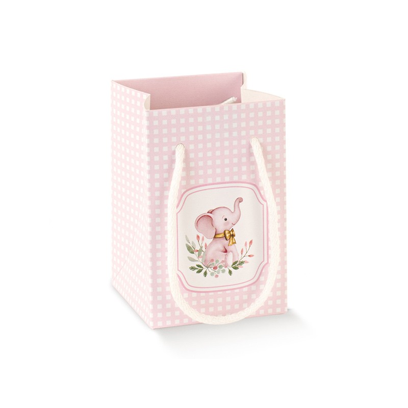 Shopper a quadretti con elefantino 7x7h12cm - 10pz