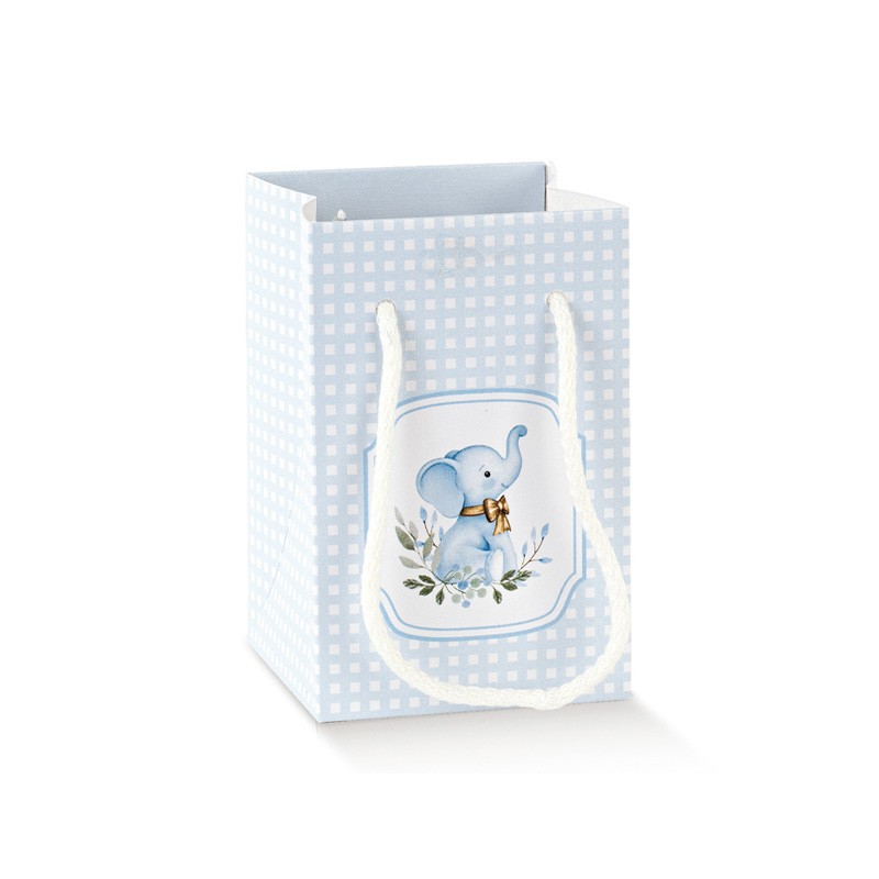 Shopper a quadretti con elefantino 7x7h12cm - 10pz