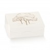 Scatolina bomboniera con inserto e disegno di un albero dorato.