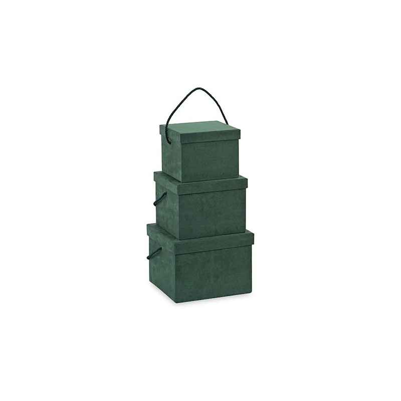 Set di 3 scatole quadrate con cordino disponibile in diversi colori