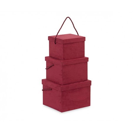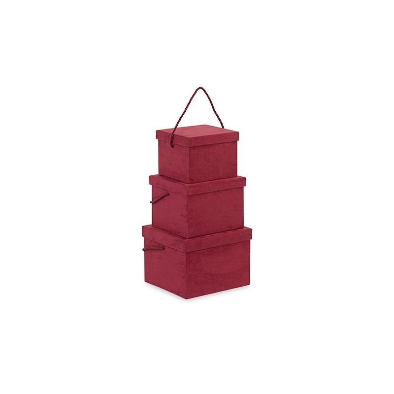 Set di 3 scatole quadrate con cordino disponibile in diversi colori