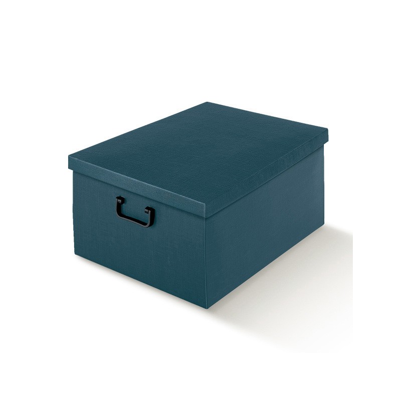 Scatola rettangolare con coperchio e maniglie.