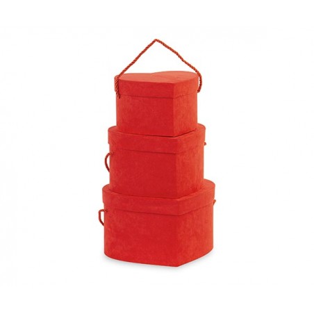 Set di 3 scatole a forma di cuore rosse con cordino
