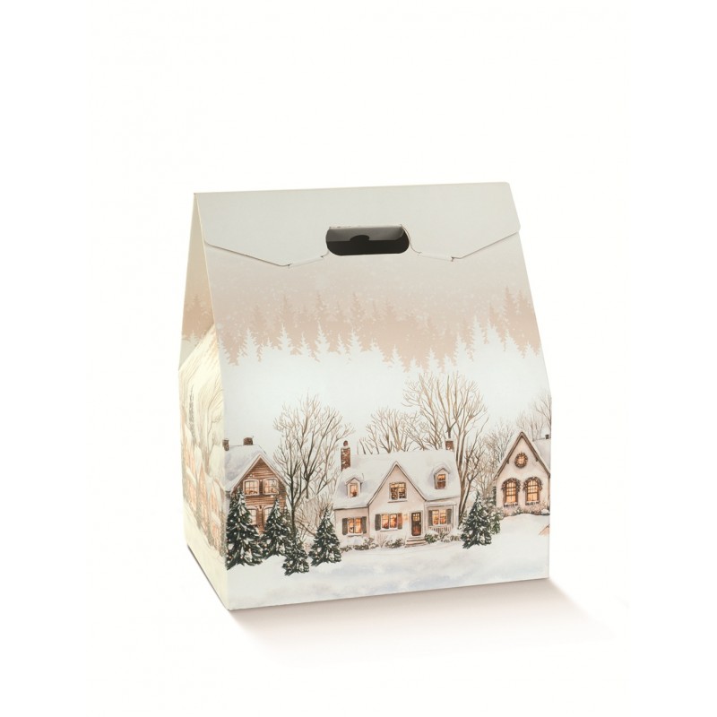 Scatola Natalizia per confezioni regalo con manico, a forma di bauletto.