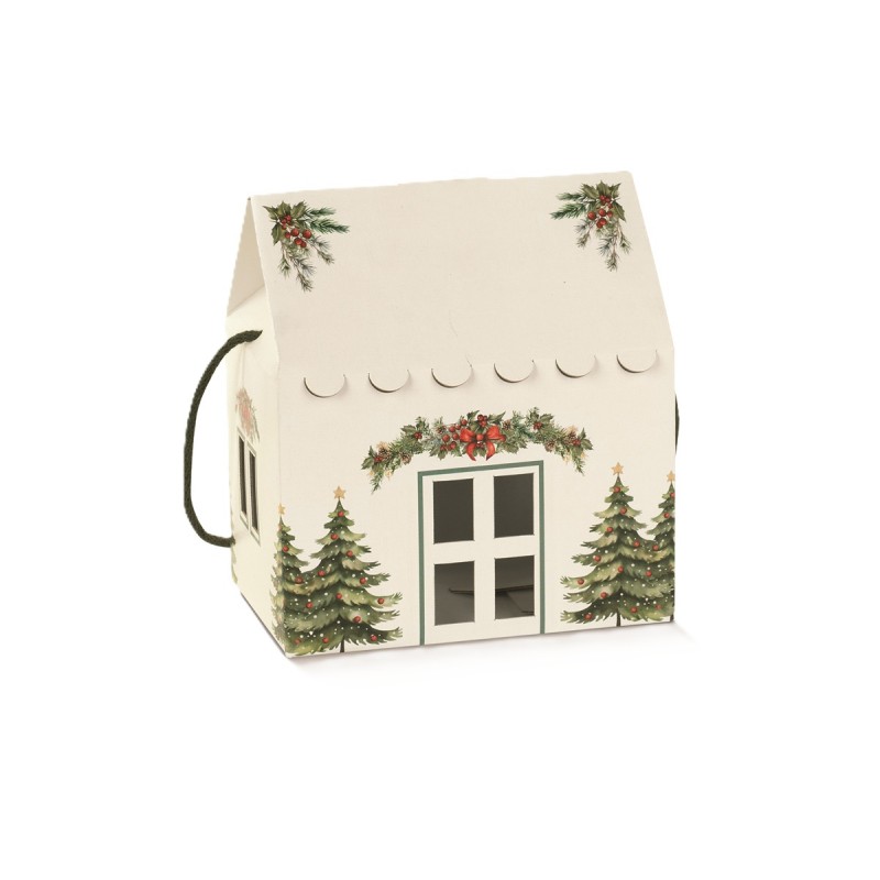 Scatola a forma di casetta con cordino.