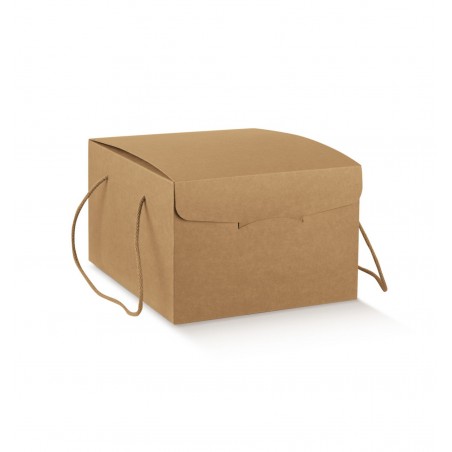 Scatola modello segreto in cartone accoppiato con cordini per il trasporto.