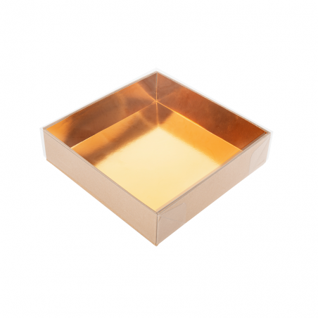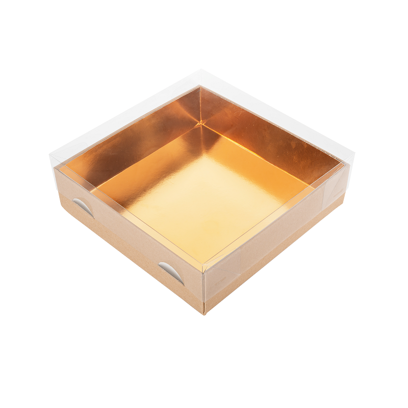La finestra in PVC sul coperchio è perfetta per l’esposizione della piccola o media pasticceria e rende la scatola ideale per le confezioni regalo.
