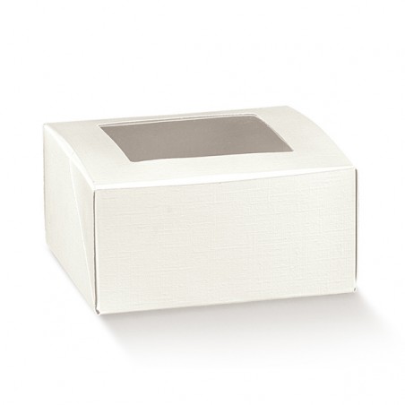 La finestra in PVC sul coperchio è perfetta per l’esposizione della piccola o media pasticceria e rende la scatola ideale per le confezioni regalo.