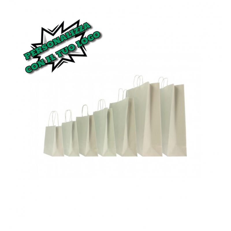 Tradizionali shopper in carta Biokraft con manico in cordino.