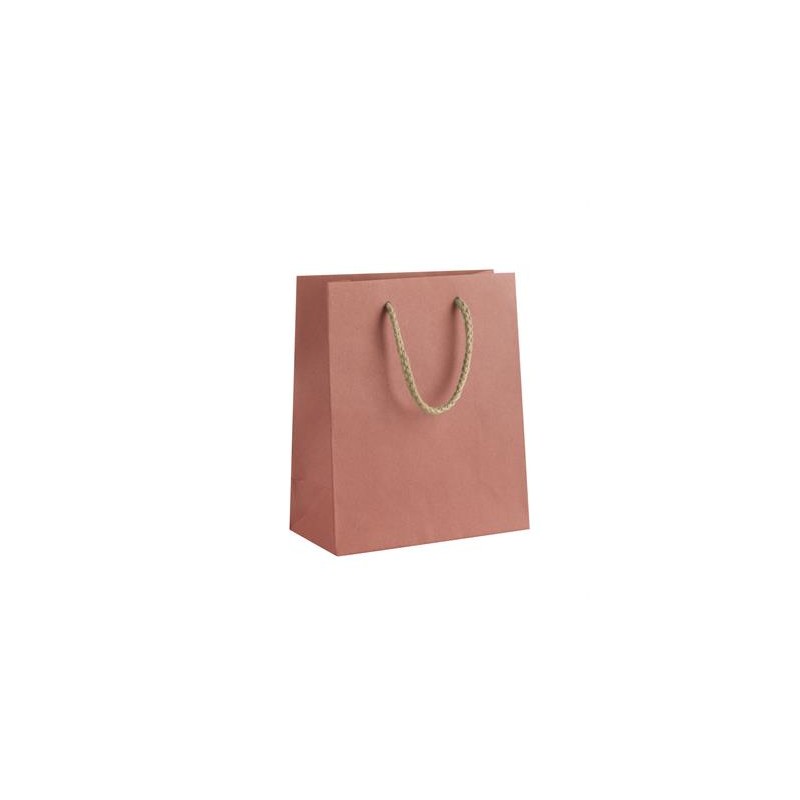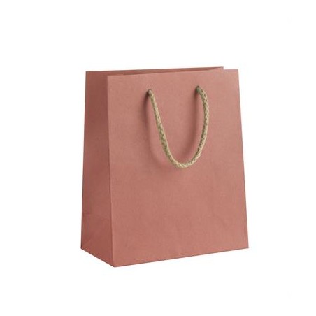 Tradizionali shopper in carta Kraft colorata con manico in cordino.