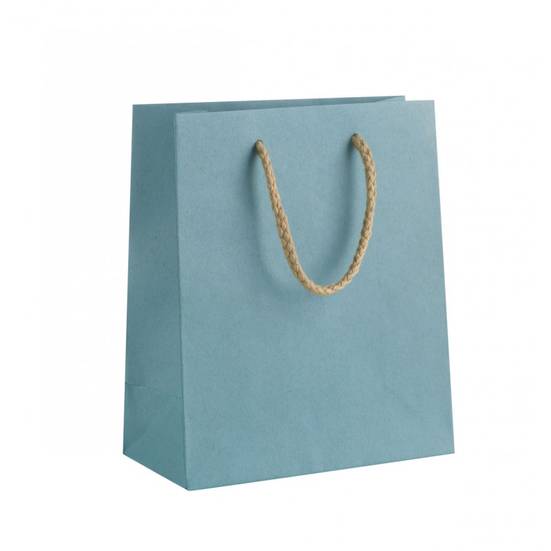 Tradizionali shopper in carta Kraft colorata con manico in cordino.