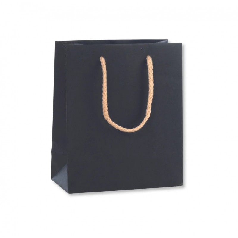 Tradizionali shopper in carta Kraft colorata con manico in cordino.