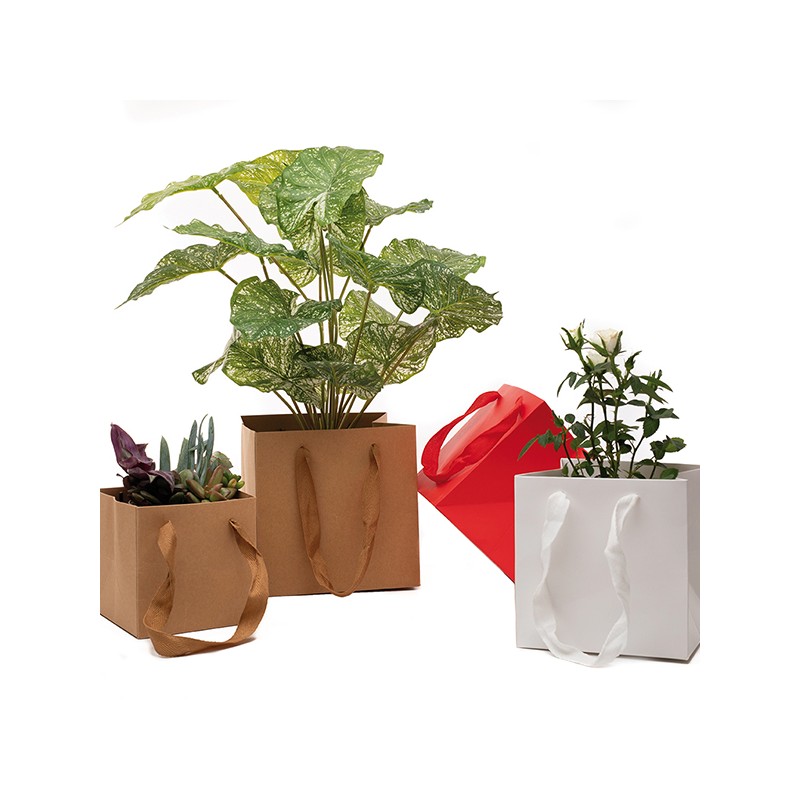 Shopper di carta rivestita di forma cubica.