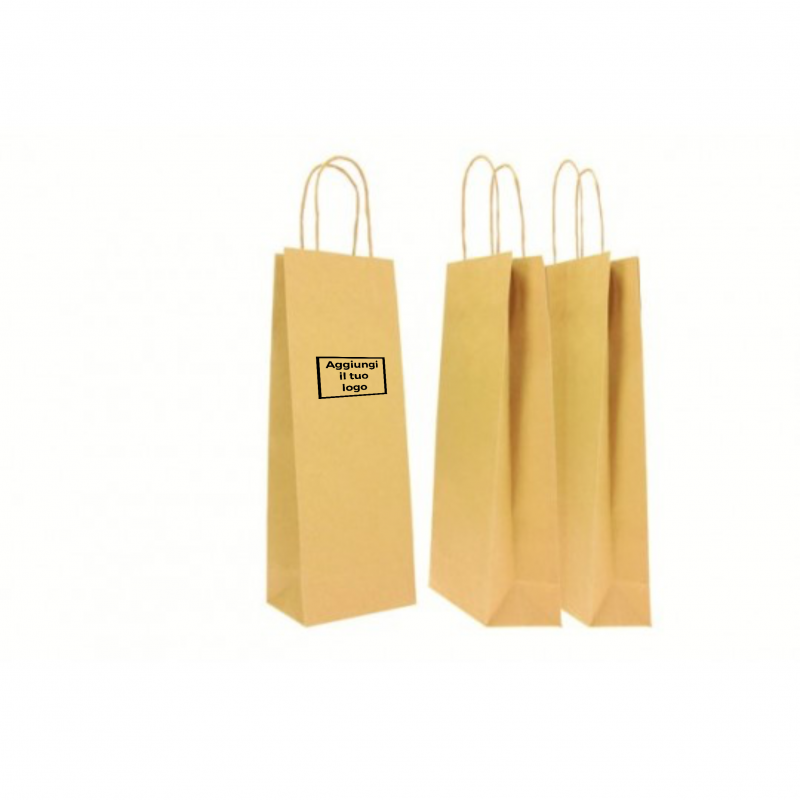 Shopper porta bottiglia barbera in carta Kraft colorata con manico in cordino.