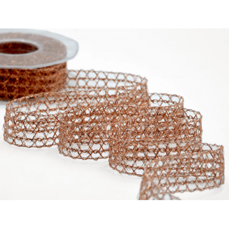 Nastro tessuto a rete con filato lurex e lamé color rame, altezza 30 mm