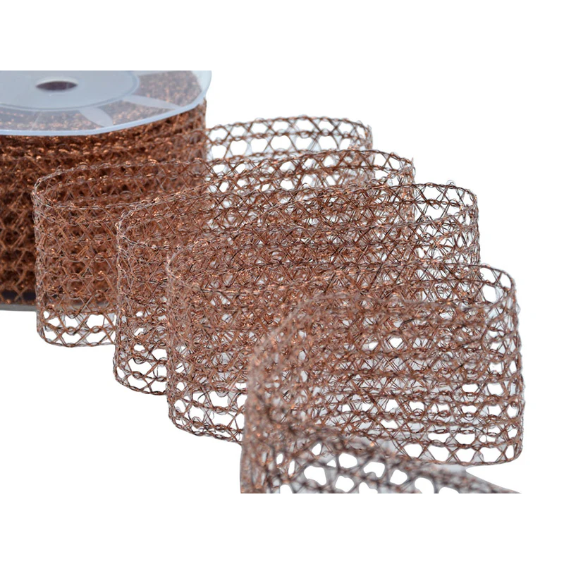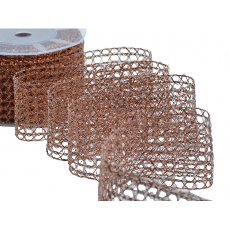 Nastro tessuto a rete con filato lurex e lamé color rame, altezza 60 mm