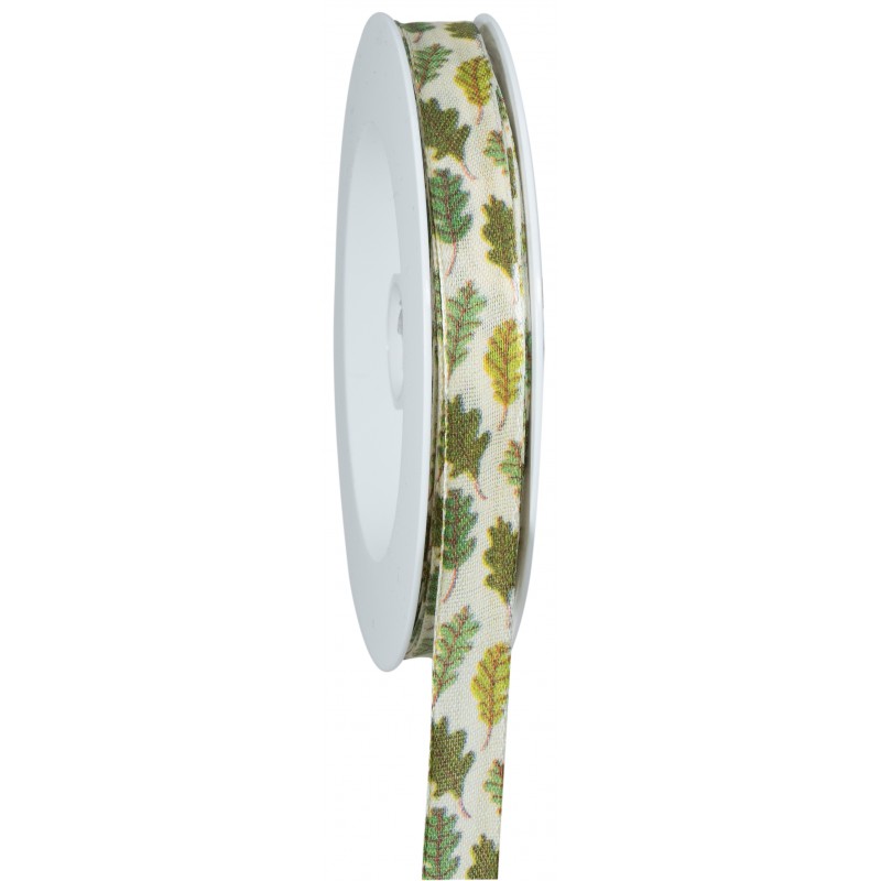 Nastro autunnale in cotone con stampa di foglie colorate e altezza 15 mm