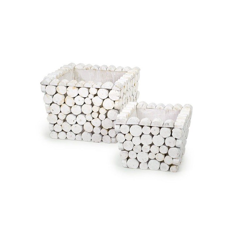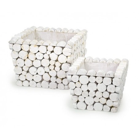 Set di due contenitori formati da sezioni di legno di colore bianco.