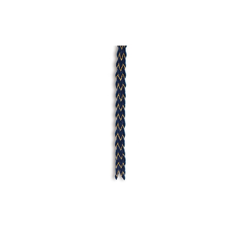 Cordone in tubolare realizzato con filato di velluto alternato a filati dorati.